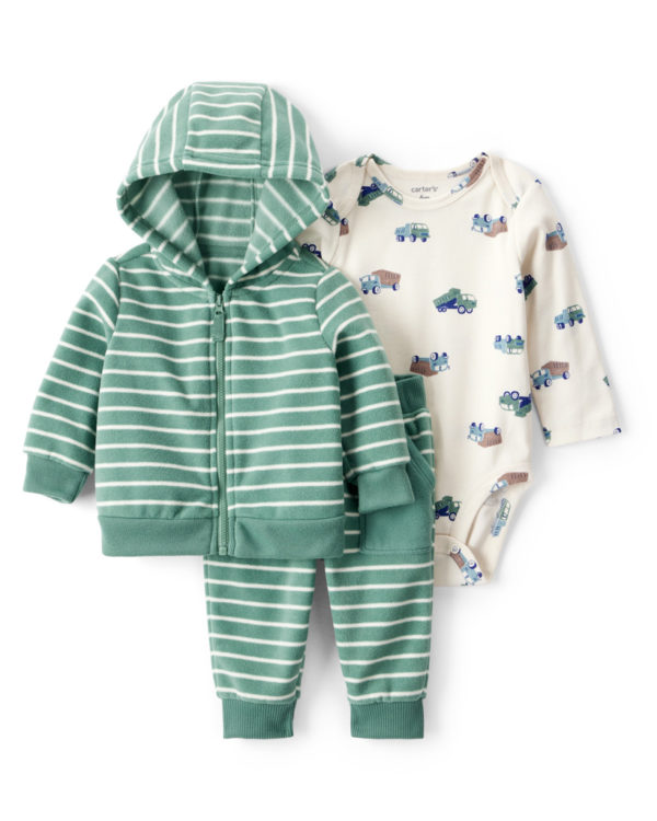 CARTER’S Set 3dielny fleece-body dl. rukáv ,mikina,nohavice green stripe chlapec 3m/veľ.62