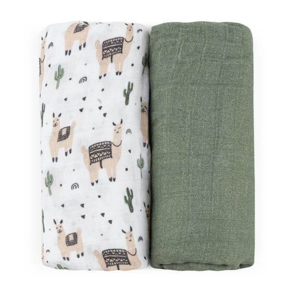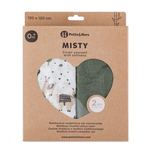 PETITE&MARS Prikrývka bambusová mušelínová 2ks Misty Llama Vibes 120 x 120 cm